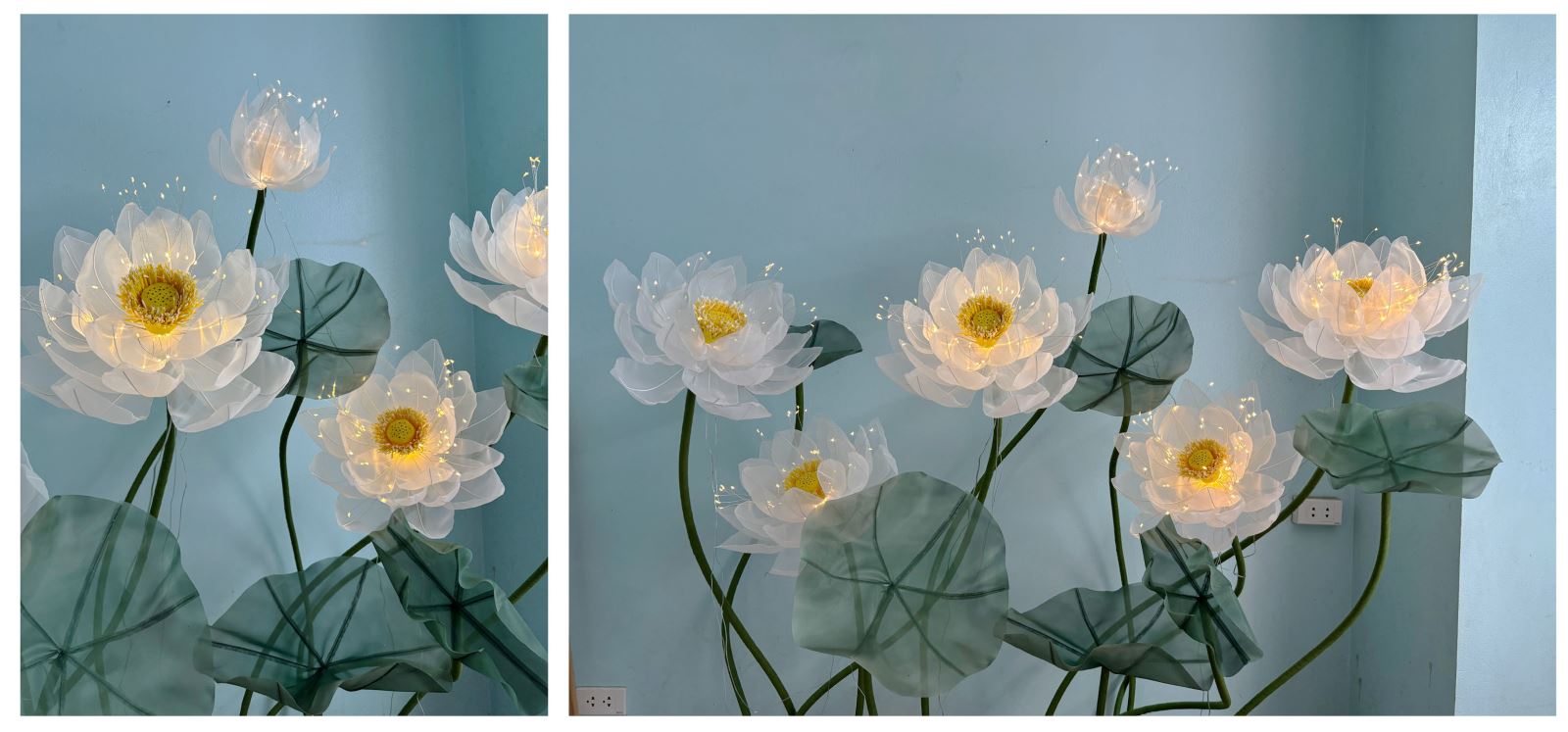 Tổng hợp làm hoa sen có đèn, không có đèn và lá.