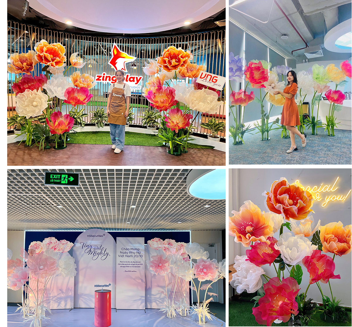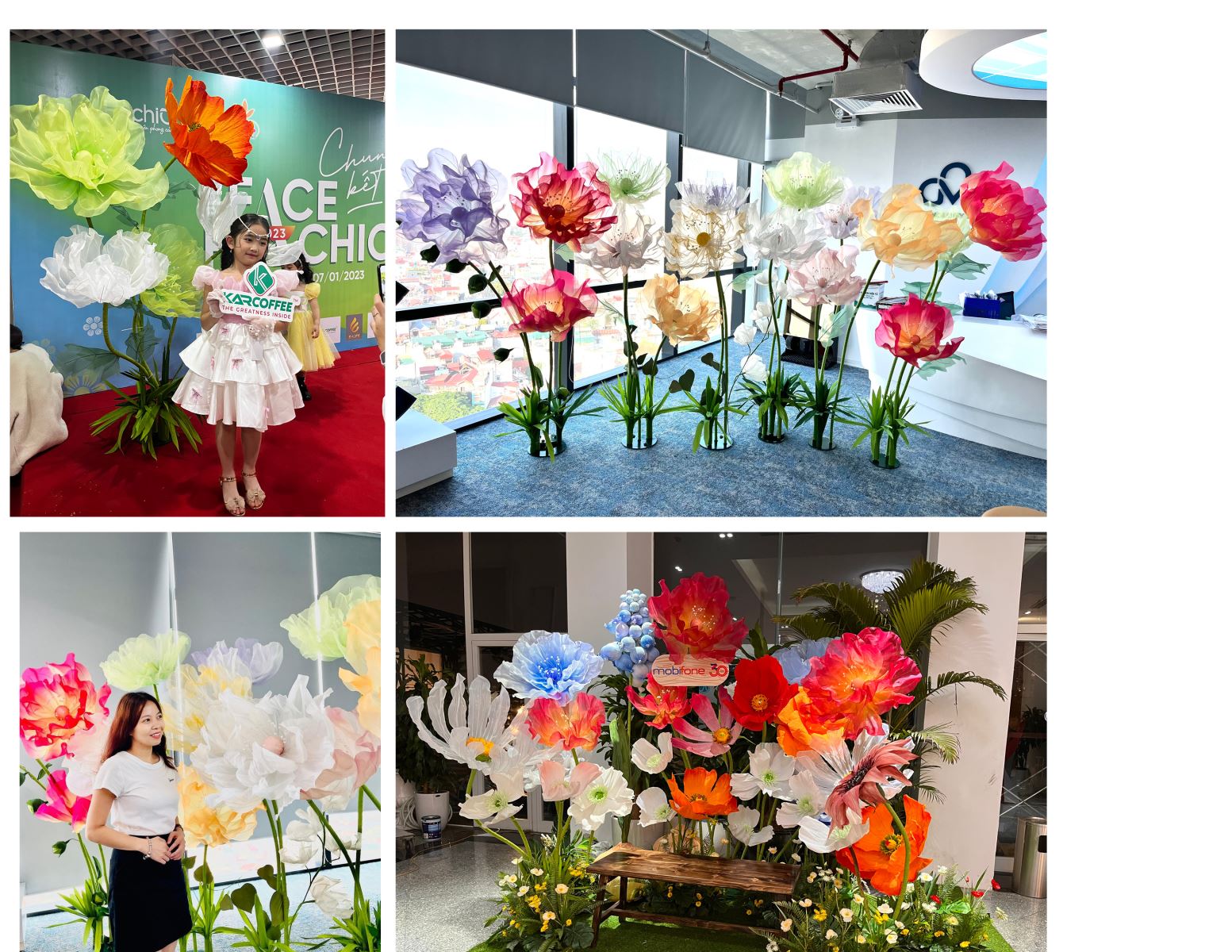 Mẫu hoa khổng lồ được xem là “quốc dân” trong ngành trang trí sự kiện nhờ khả năng phù hợp với nhiều concept khác nhau, từ khai trương, sinh nhật đến đám cưới hay sự kiện doanh nghiệp. Với kích thước nổi bật và 14 màu sắc đa dạng, hoa dễ dàng tạo điểm nhấn thu hút ngay từ ánh nhìn đầu tiên.